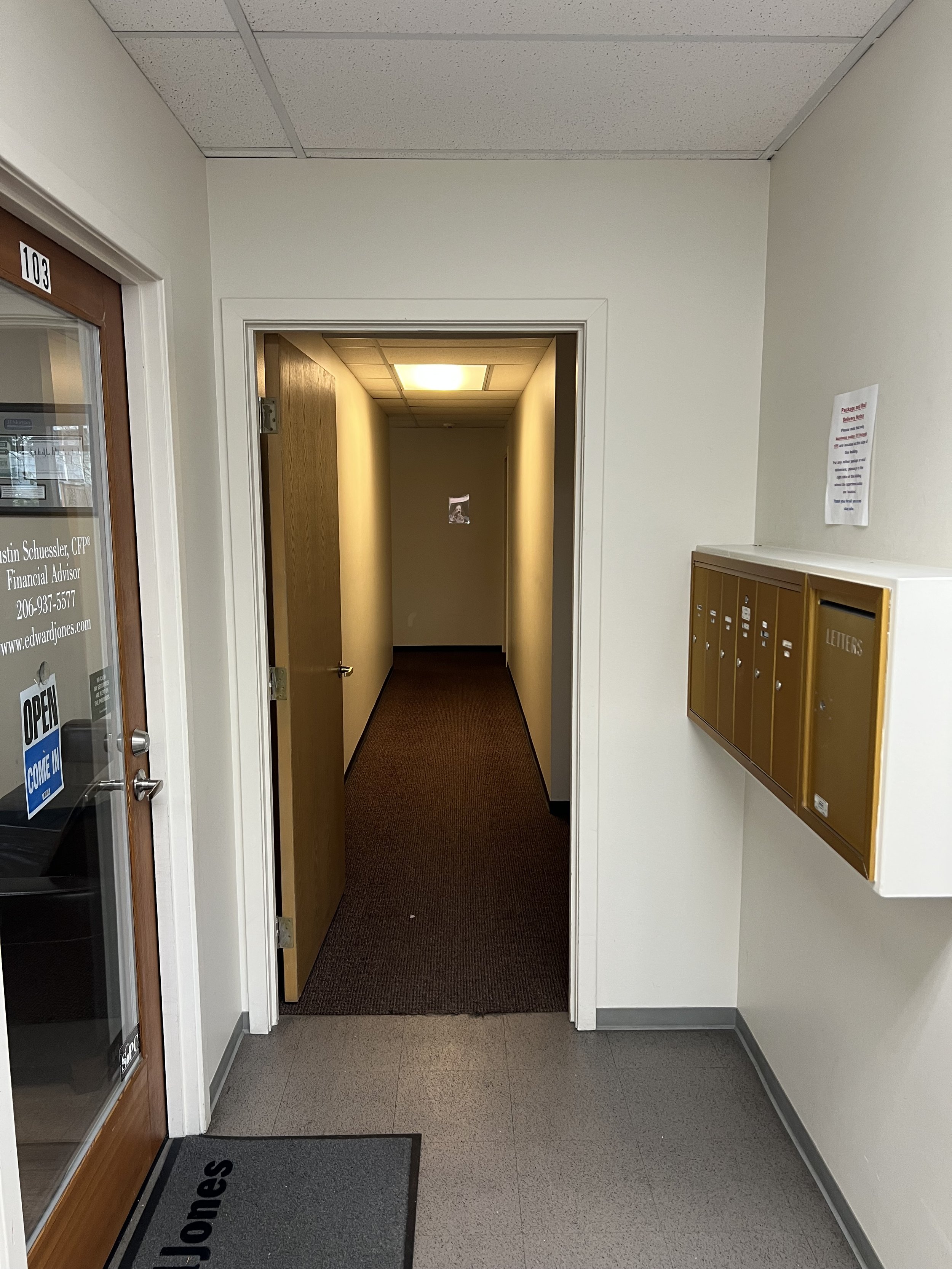 When you walk through the front door of the building, walk down the hallway and turn left. We are in Suite 105.